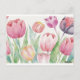 Postal Feliz Cumpleaños Tulipanes Acuarela Floral Abstrac