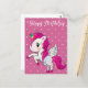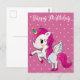 Postal Feliz cumpleaños, unicornio y corazones, personali