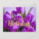 Postal Feliz Cumpleaños Vibrantes Flores de Tulipanes Mor