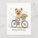 Postal Feliz Cumpleaños Yorkie en Bicicleta Flores de Pri