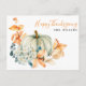 ¡Feliz Día de Acción de Gracias! Esta tarjeta tiene una calabaza y flores en tonos suaves. Puede personalizar el mensaje en la parte posterior o eliminar el texto para que tenga espacio para una nota manuscrita.