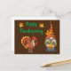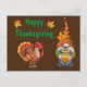 Una tarjeta de felicitación feliz de Acción de Gracias diseñada con Turquía y Gnome otoño