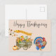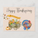 Postal Feliz Día de Acción de Gracias Pavo Calabaza Carro