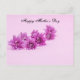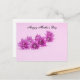 Postal Feliz Día de la Madre con flor morada sobre rosa