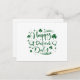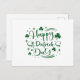 Un diseño festivo del Día de San Patricio que incluye textos de escritura verde, shamrock, estrellas y giros decorativos sobre un fondo negro.