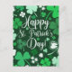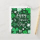 Esta postal presenta un patrón de shamrock en verde con el Feliz Día de San Patricio.