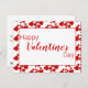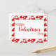 Esta postal El día de San Valentín es roja y blanca. 'Feliz Día de San Valentín' está en rojo en el frente. La frontera tiene un patrón de corazones rojos. La parte posterior tiene dos líneas de texto en negro. Puede editarlo para mostrar un mensaje personalizado y su nombre.