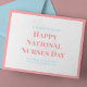 Celebre el Día Nacional de las Enfermeras con un toque de elegancia y afecto. Esta tarjeta postal presenta una proclamación sincera en tipografía roja suave y sombreada, que declara con audacia "Feliz Día Nacional de las Enfermeras" sobre un fondo blanco prístino. Enmarcada por un delicado borde rosa que añade un toque sutil de color, la tarjeta transmite un mensaje sincero de gratitud con un diseño discreto pero impactante. Es un gesto perfecto para mostrar aprecio a las enfermeras que dedican sus vidas a cuidar a los demás, con un diseño clásico y contemporáneo.