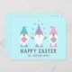 Postal Feliz Gnome de Pascua jadeando huevos de Pascua