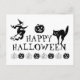 Postal Feliz Halloween blanco negro espeluznante lindo