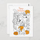 Un divertido doodle kawaii dibujado a mano, negro y blanco, pero con calabazas naranjas