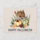 Postal Feliz Halloween Lindísimo Murciélago con Calabazas