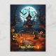 Postal Feliz Halloween Skeleton Skull Hauned House
