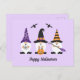 Postal Feliz Naranja púrpura de Halloween Gnomes