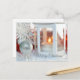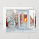 Gray Merry Navidad texto de saludo en una linterna blanca en la nieve, con una vela ardiente. Balón de ornamento purpurina plateado. Editable