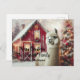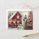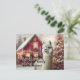 Feliz Navidad con una Alpaca un árbol de Navidad decorado y un granero rojo Tarjeta postal personalizada
