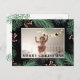 Tu familia y amigos adorarán esta hermosa postal de 'Feliz Navidad'. Presenta elementos botánicos modernos de color verde y rojo pálido sobre un fondo negro. Personalizar con su propia foto y apellido.
