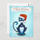 Postal Feliz Navidad con un gato negro con el Gorra de Sa