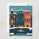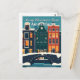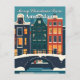 Envíe un saludo festivo y moderno con esta postal de diseño plano. Cuenta con las emblemáticas casas del canal de Ámsterdam y el puente decorado con luces Navidades bajo un cielo nevado. Perfecto para enviar deseos de vacaciones únicos y celebrar el espíritu de un Navidad holandés. Un ilustracion elegante y minimalista para coleccionistas y viajeros.