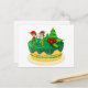 Postal Feliz Navidad Elfos verdes bailando en un pastel