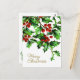 Texto de la tarjeta navideña del guión navideño y ilustracion vintage de bayas rojas y hojas siempre verdes, con texto de personalizable en la parte delantera y trasera de la tarjeta.