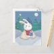 Un bonito ilustracion de un conejito con una manta delante de árboles decorados