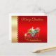 Elegante postal presenta un trineo de Santa con regalos coloridos sobre fondo rojo, con corazones románticos sobre fondo dorado, con texto... Feliz Navidad. Puede personalizar fácilmente con su elección de texto.