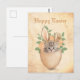 Postal Feliz Pascua lindo conejito Vintage gatito y huevo