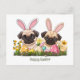 Postal Feliz Pascua, Perro de Pug, Orejas Conejitas