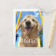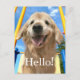 Esta alegre postal muestra una fotografía de un sonriente perro recuperador de oro, junto con la palabra Hello! El texto de personalizable dice: "¡Sólo quería saludar!"