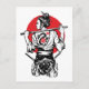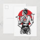 female samurai postcard, dragon rose tattoo card, japanese warrior woman invitation, onna bugeisha greeting, katana shoulder note card, red rising sun postcard, tattoo style samurai card, strong woman stationery, feminine bushido invite, japanese tattoo art greeting