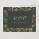 Esta fiesta botánica | solicitud de postales de la canción verde oscuro RSVP es perfecta para su boda de invierno rústica y caprichosa. Diseñado con Navidades boho y vegetación acuática, incluyendo bayas rojas y hojas verdes simples. La floral bohemia clásica de diciembre es otra característica de diseño que completará el tema que buscas. Puedes personalizar con tus propias fotos o mantenerlo tal cual. ¡Asegúrate de revisar el resto de la colección para completar tu suite boda!