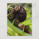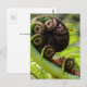 Postal: Salto de helechos en vías de desarrollo - Árboles de Fern, bosque lluvioso de Nueva Zelanda - típicas plantas de bosque antiguo de los parches vírgenes de la hermosa naturaleza. Las hojas de helecho que se despliegan son una de las cosas más bellas que observar, mientras se hace senderismo por Nueva Zelanda. Serie de viajes y caminatas - la naturaleza salvaje de Nueva Zelanda. Fotografía original/Arte/Diseño de work4dream.