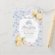 ¡Es hora de Par-tea! Eleva tu próxima fiesta de cumpleaños con este delicado ramo de flores de chinoiserie azul claro. Este tema floral caprichoso está inspirado en el encanto de un jardín francés, con un patrón de toile pastel con limones picantes y flores rosadas suaves.