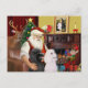 Santa en casa con sus dos fideos Standard, relajándose frente al fuego antes del gran día. Noten a Mona Lisa sobre el manto sosteniendo al mismo perro.