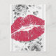 A set of two luscious lips and flowers on a romantic happy birthday card for him or her.