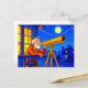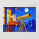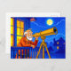 Ilustración alegre de un hombre mayor mirando a través de un telescopio al cielo nocturno, explorando estrellas y planetas. Perfecto para jubilados activos, entusiastas de la astronomía y escenas de hobbies caprichosos.