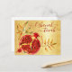 Postal Festiva Acuarela de Rosh Hashaná Granada Roja sobre Dorado