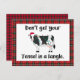 Envía una sonrisa y un recordatorio para relajarte esta temporada navideña con este diseño divertido y lleno de juegos de palabras. Una alegre vaca en blanco y negro, vestida con un sombrero de Santa y envuelta en luces navideñas festivas, acompaña la clásica frase navideña: "No te enredes con los adornos". Enmarcada en un tradicional cuadros escoceses rojo y verde, esta tarjeta postal es perfecta para cualquiera que aprecie el humor campesino, los juegos de palabras y el estilo rústico de Navidad rural.