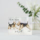 Esta postal muestra una reproducción de mi pintura acuarela original de dos airedale jugando en la nieve.