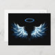 Postal Festiva Alas del Ángel Azul brillante sobre fondo negro