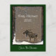 Ilustraciones de Juan Bauer del vintage que representan un alce que se coloca en la nieve entre dos árboles.