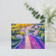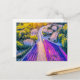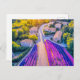 Postal Festiva Aldea con Campos de Lavanda y Caminos Eólicos