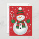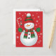 Postal Festiva Alegre fiesta de Navidades rojos de Snowman con bu
