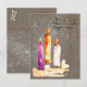 ¡Alegría! Tarjeta postal de Trio de Velas Acuarela Brillo Navideño - Un hermoso diseño de velas en acuarela en la parte frontal con la definición de la palabra ALEGRÍA. "Alegría, un sentimiento de gran placer y felicidad". Brillantes destellos puntean un fondo marrón vintage. El otro lado tiene el mismo fondo vintage con destellos brillantes y la palabra ALEGRÍA en el espacio para la estampilla. Es una tarjeta laica encantadora para la Temporada Navideña.