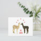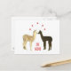 Dos alpacas se encuentran. Los corazones están por encima de la cabeza y el texto dice "Sé mío"