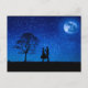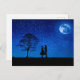Amantes bajo una luna llena con fondo de noche estrellado azul. 100% Personalizable. Haga clic en el botón PERSONALIZAR para agregar, mover, eliminar, cambiar el tamaño o cambiar cualquiera de los tipos de letra o gráficos.