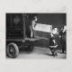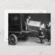 La vieja foto de la década de 1920 del espeluznante hombrecillo y de Santa Claus descargan una caja de un camión del American Railway Express a los Navidades.