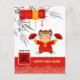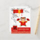 Feliz Año Chino de la Rata. Rojo festivo | Postales de diseño de Relieve metalizado dorado con un pequeño ratón con fans chinos. El personaje chino frente a la tarjeta es un Rótulo de Rat en el zodiaco chino. Tarjetas coincidentes, sobres rojos tradicionales chinos y regalos disponibles en la categoría Año Nuevo chino / Año de la Rata de nuestra tienda.
