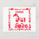 Audaz diseño geométrico de caballo rojo inspirado en el zodiaco chino y simbolismo festivo.